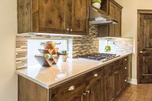 Starline Cabinets Create a window seat. The backsplash tiles are recycled glass and the countertops were used from scrap stone from a previous project. Lynk Professional Wide Roll-Out Under-Cabinet 17-Inch Single Drawer.